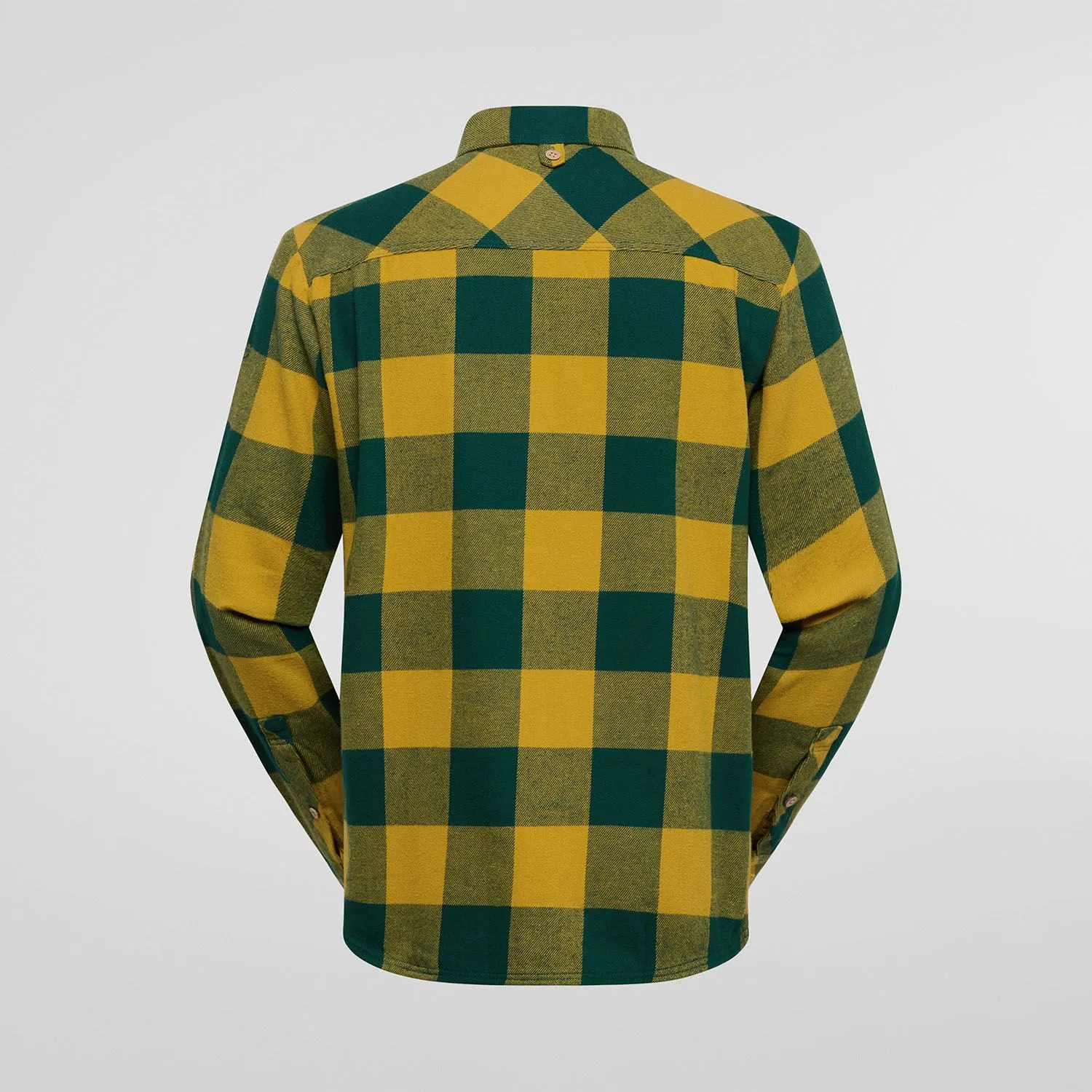 Una classica camicia di flanella in misto cotone e poliestere, con bottoni unici in noce di cocco.
